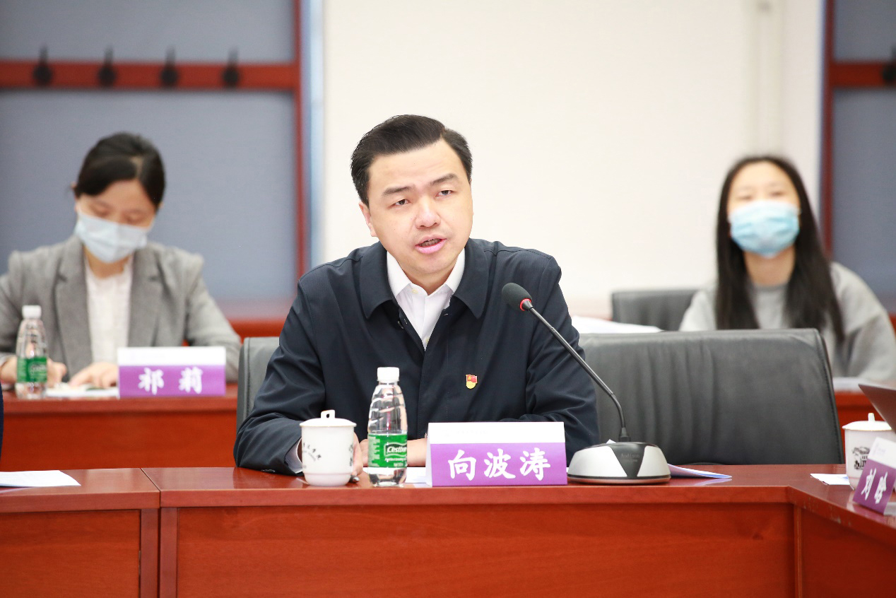 向波涛在致辞中指出,习近平法治思想内涵丰富、科学系统,将历史和现实相贯通、国内和国际相关联、理论和实践相结合,为深入推进高校法学教育事业发展提供了思想指引和行动指南。向波涛充分肯定了法学院贯彻落实习近平法治思想的相关工作并指出,清华大学即将迎来110周年校庆,在学校进入迈向世界一流大学前列的新发展阶段,希望法学院进一步面向党和国家重大战略需求,扎实深入地推进习近平法治思想“进教材、进课堂、进头脑”,以全面优化法学课程体系为抓手,以提升法学人才培养质量为核心,结合国家对涉外法治人才的需求,加强国际交流合作,培养既了解中国国情又具备国际视野的法治后备力量。