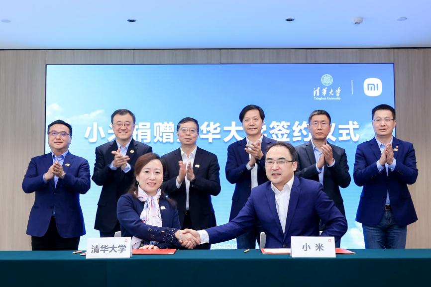 清华新闻网4月12日电 4月12日,小米捐赠清华大学仪式在北京小米科技园举行。此次捐赠,小米将在清华大学智能产业研究院(AIR)设立“小米人工智能创新研究基金”,旨在鼓励人工智能、机器人、医疗健康等前沿领域的创新科研,同时支持电子系、软件学院、自动化系、计算机系的学生实践课程建设,促进学生创新成长。小米集团创始人、董事长兼CEO雷军,清华大学校长邱勇,副校长、教育基金会理事长杨斌,小米清华校友代表等出席捐赠仪式。
