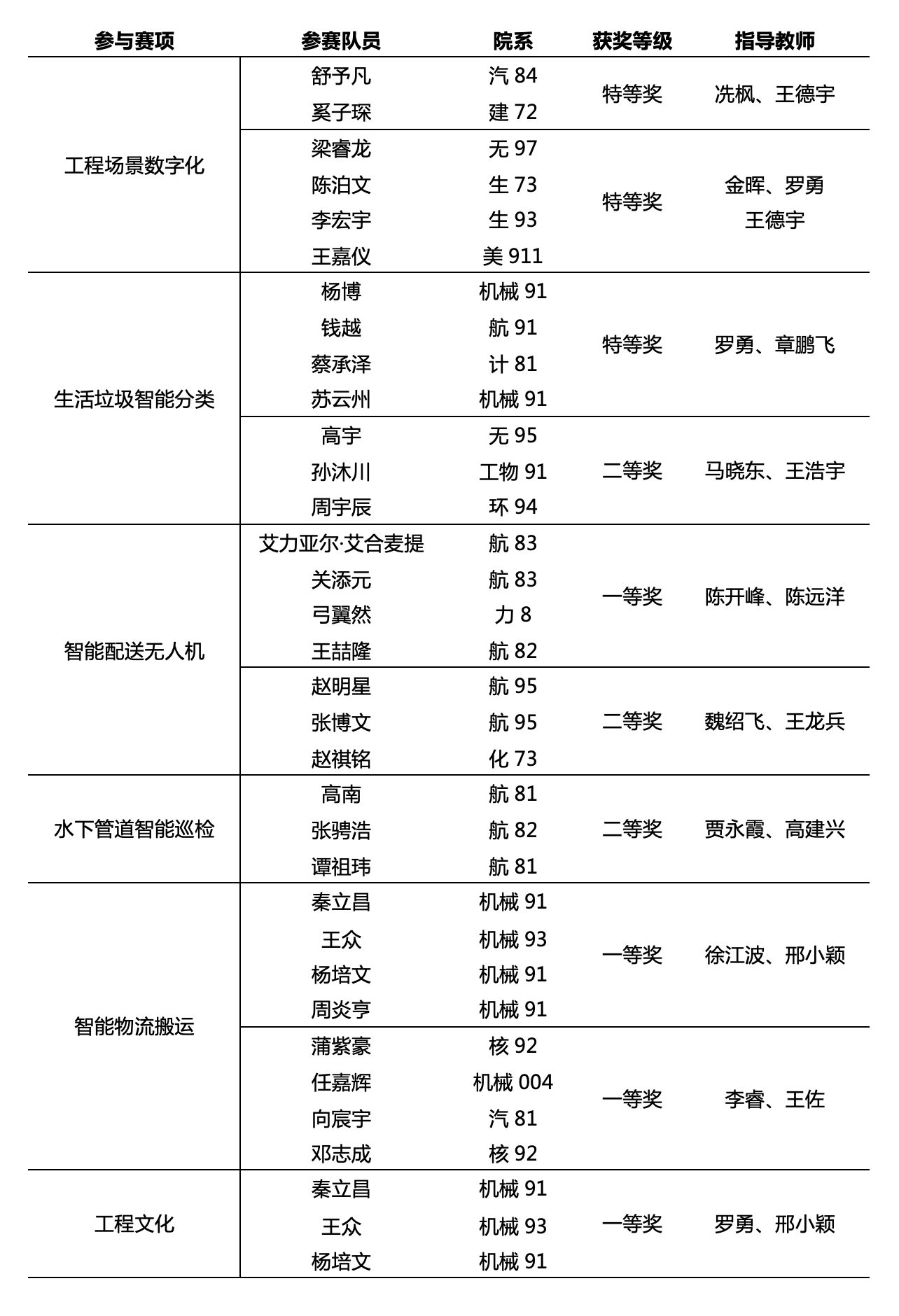 本次大赛以“守德崇劳工程创新求卓越,服务社会智造强国勇担当”为主题,共设置了工程基础、“智能+”、虚拟仿真和工程创客四个赛道与13个赛项。清华大学iCenter通过在《制造工程体验》CC01-课赛结合单元课程中引入了综合性较强的项目,不断完善教学方案,并举行了校内选拔赛。选拔赛产生了10支参赛预备队,分别参加了智能物流搬运、水下管道智能巡检、生活垃圾智能分类、智能配送无人机、工程场景数字化、工程文化等6个赛项,10支赛队全部获得大赛奖项。