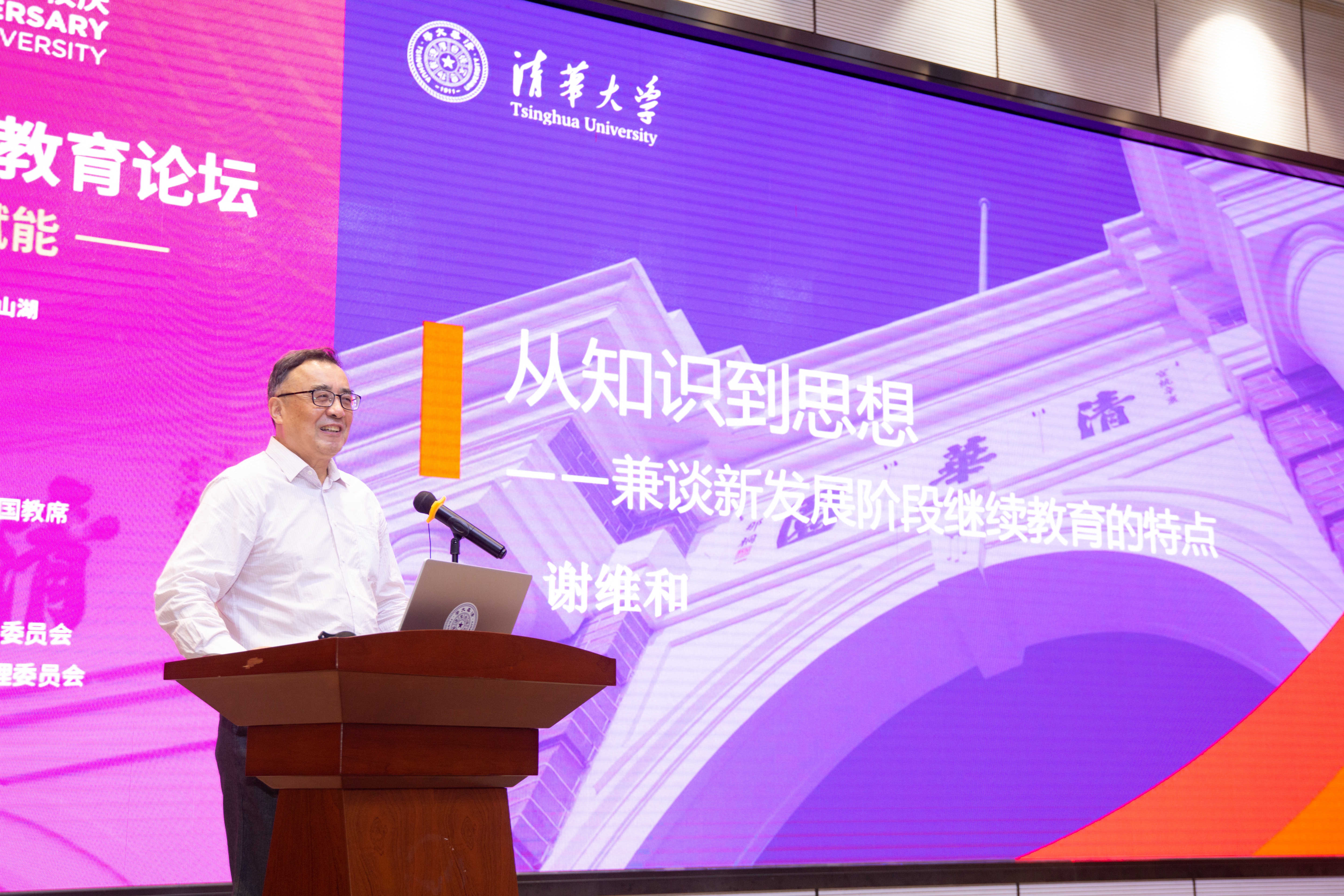 郑力在致辞中表示,“自强成就卓越,创新塑造未来”,四十年来,清华大学在各个历史时期磨砺自强卓越的精神底色,积淀行健致远的自信自觉,凝聚起继续教育创新引领的强大力量。自强创新始终是清华大学继续教育发展的强大动力,是塑造继续教育未来的不竭源泉。融合的继续教育就意味着大学要打破物理边界,让学校与学校之间、学校与产业之间有更加紧密的合作;意味着要打破学科壁垒,实现不同知识体系的融合,以跨学科视角为产业人才配置优质教育资源;意味着要推动教育变革、科技进步与社会发展的融合,构建网络化、数字化、个性化、终身化的教育体系。“赋能”是继续教育的重要目的,也是继续教育的意义、价值和使命所在。在“构建服务全民终身学习的教育体系”的全新学习生态中,大学应该既是终身学习理念的倡导者、传播者,也是终身学习资源集聚和专业服务的实践平台,是一种基于“产业、行业、专业”的学习生态。大学继续教育应强化集成创新者的角色意识,把学校、社会和产业等各种教育要素集聚整合,贯通衔接知识教育、能力教育与素质教育,让教育成就每个人梦想的同时,赋能组织、创造价值。郑力希望本次论坛对新时代继续教育发展面临的诸多挑战提出更具全球视野、更具前瞻性的思想和举措,为建设更开放、更融合、更具韧性的高质量继续教育贡献更多的智慧和力量。