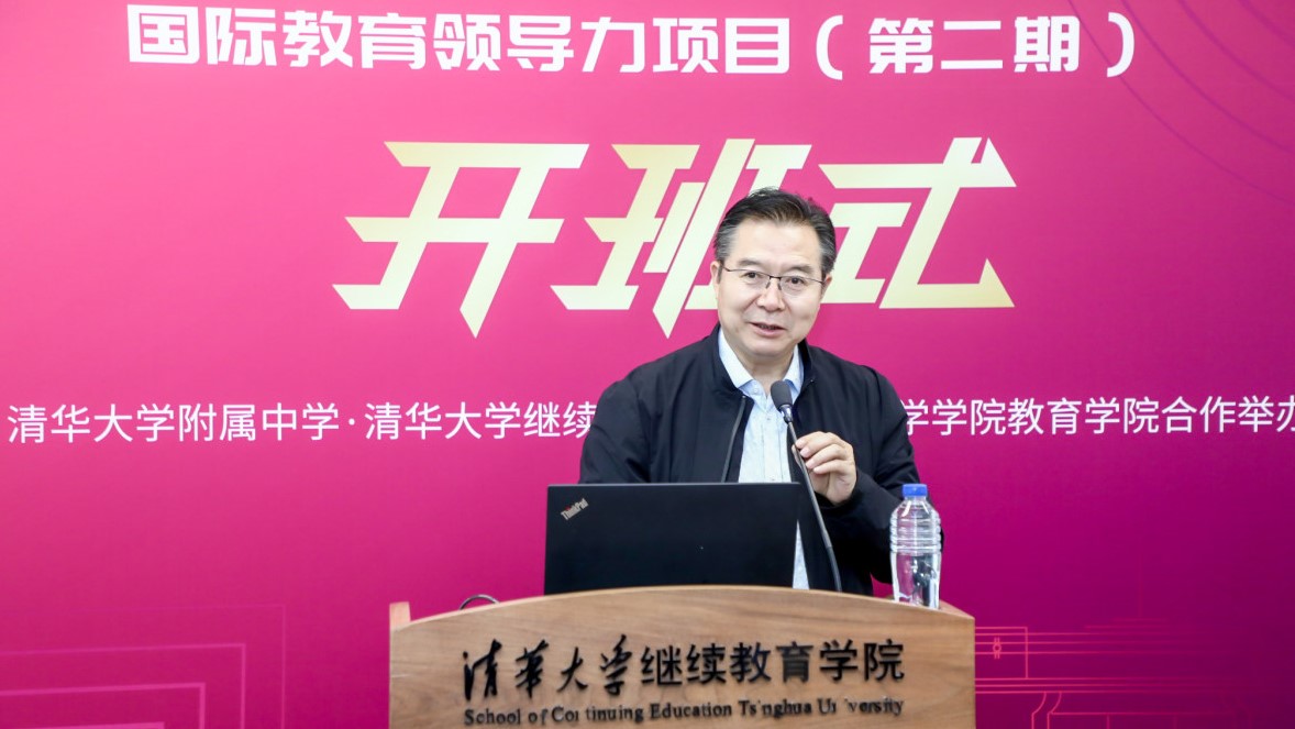 刘震代表清华大学继续教育学院对各方的支持表示感谢,并重点分享了对“国际”“教育”“领导力”三个词的看法。他表示,教育工作者身处“百年未有之大变局”之中,学习国际教育的先进理念正是为走出具有中国特色的教育发展道路做好知识储备。刘震向项目学员提出三点建议:希望学员们在项目学习过程中以问题为导向;重视朋辈间的学习;养成终身学习的习惯。