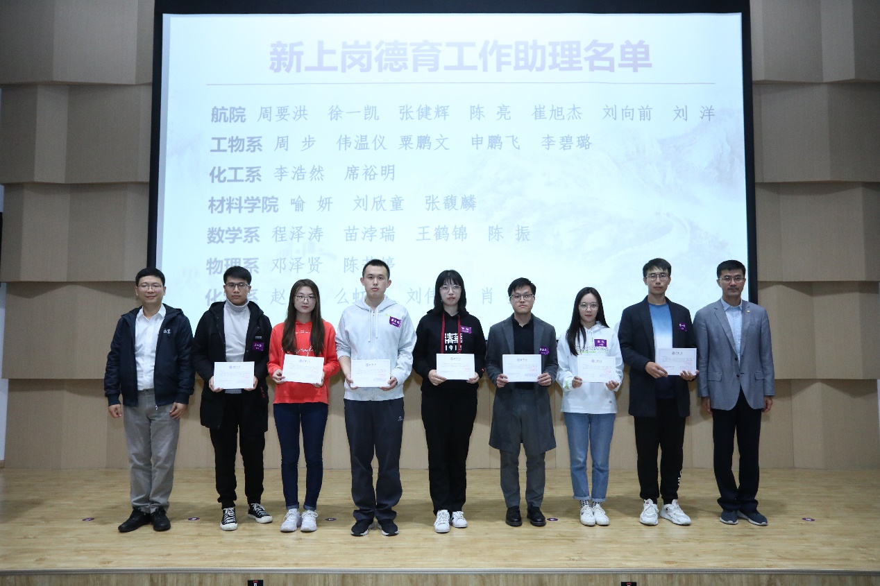 开班报告结束后,过勇、党委研究生工作部部长赵岑为新上岗的德育工作助理代表颁发了聘书。