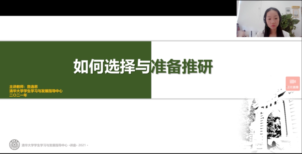 针对本科生反映的常见读研深造困惑,中心开设出“如何选择与准备推研”讲座。全面性地为学生导读《清华大学本科生学习指南》中研究生推免保送政策,介绍各大目标高校的官方研招网的权威官方信息,系统性地讲授理性选择和规划的科学决策方法。