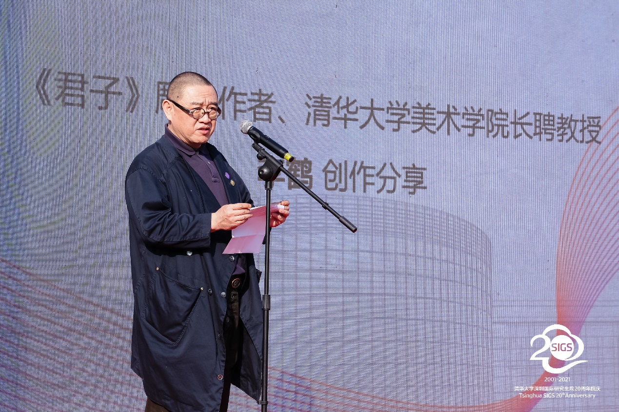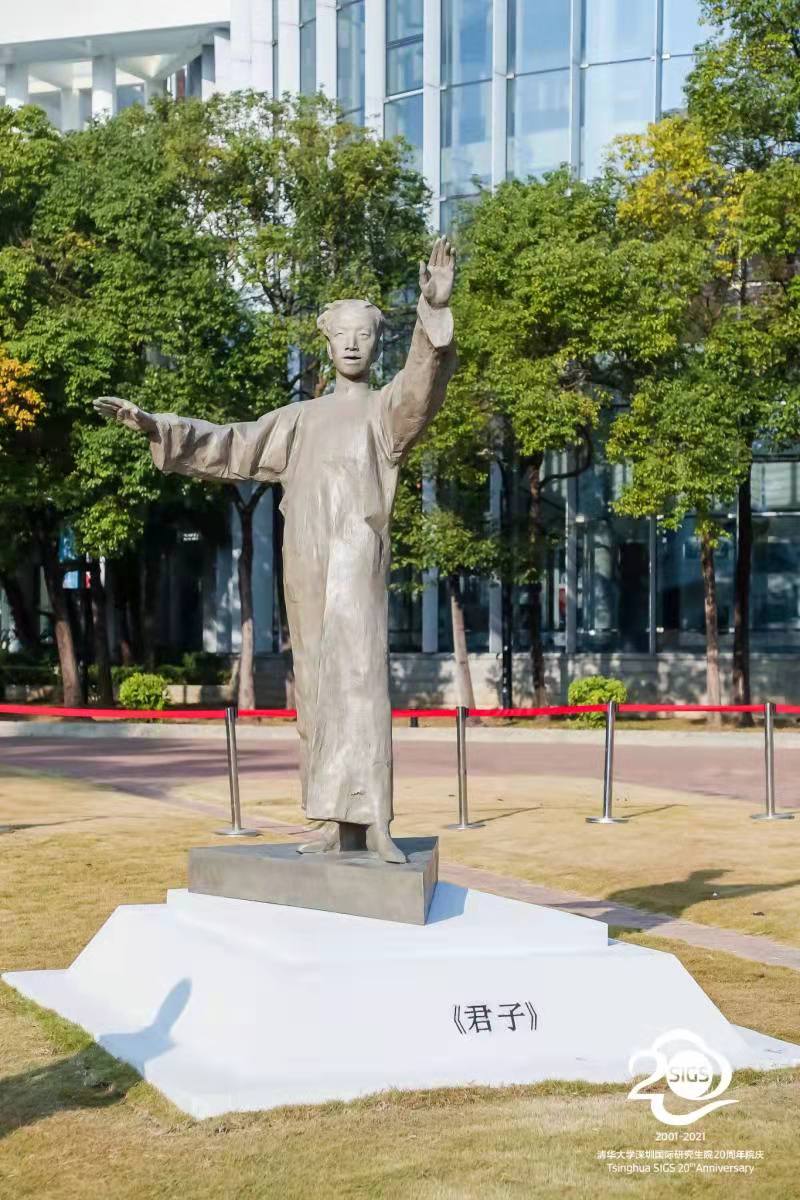 贺臻表示,自今年4月清华大学深圳国际研究生院发起《君子》雕像捐款项目以来,广州、深圳、东莞等地的校友会踊跃响应,校友纷纷慷慨解囊,为母校和深研院献上一份生日厚礼。《君子》雕像源于梁启超先生在清华的一场精彩演讲。1914年11月5日,梁启超先生应邀在清华同方部作题为《君子》的演讲。在演讲中,梁先生引用《周易》里“乾”“坤”二卦,来探讨“君子”的含义:“乾象曰:‘天行健,君子以自强不息。’坤象曰:‘地势坤,君子以厚德载物。’”自强不息、厚德载物的“君子”精神,激励着清华人埋头苦干、攻坚克难,引领着清华人以天下为己任、献身民族复兴大业,铸就了清华人在各领域的卓越成就。