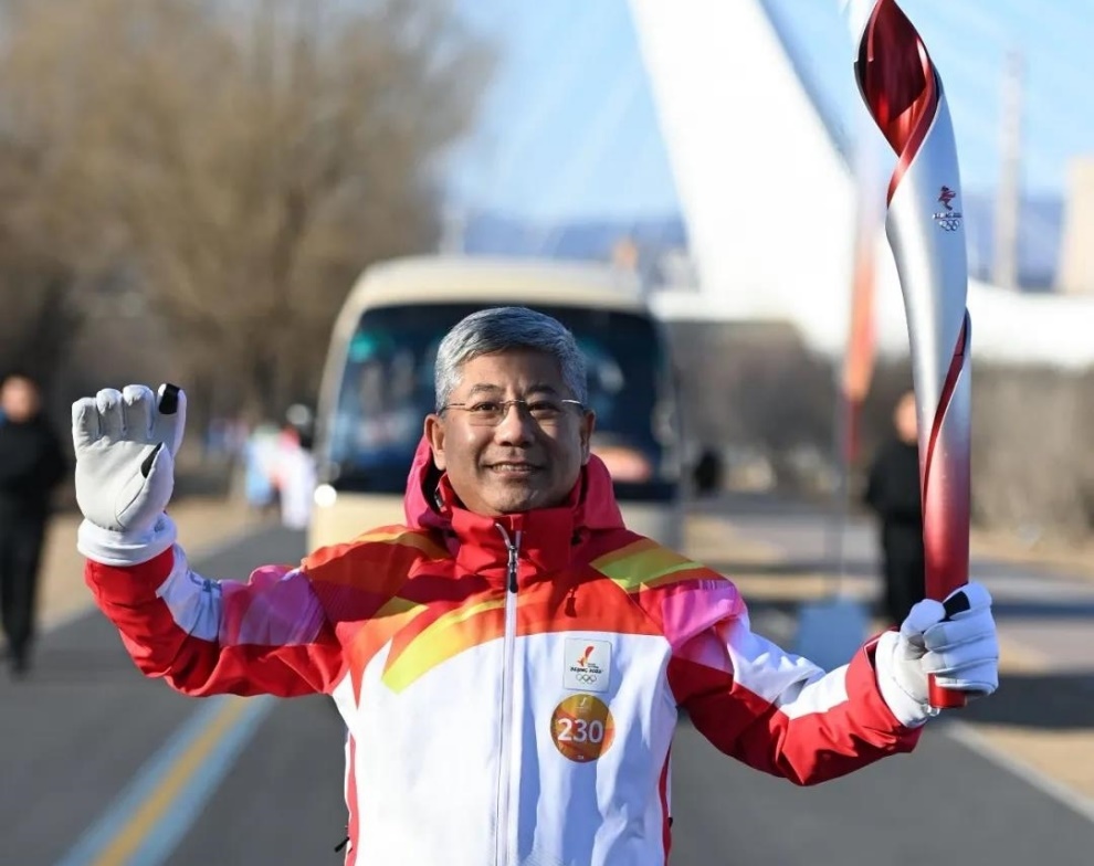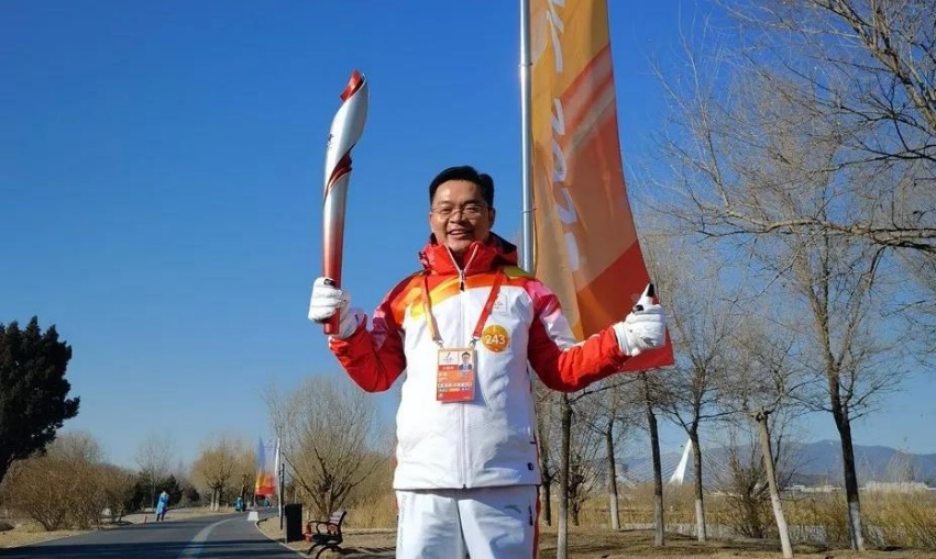 2月4日,清华创新领军工程博士、北京城建集团有限责任公司总工程师李久林作为火炬手在北京大运河森林公园参与冬奥火炬传递。