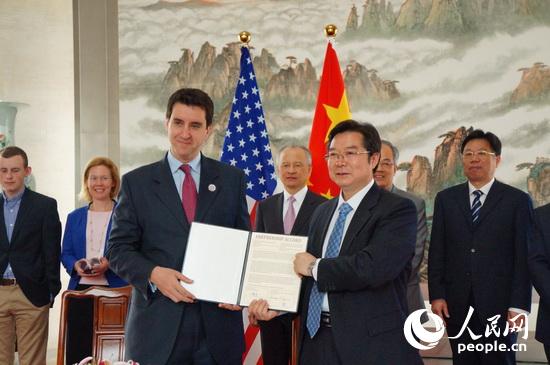 当地时间4月18日上午,清华大学附属中学与美国知名高中托马斯•杰斐逊科技高中在中国驻美使馆举行友好学校签字仪式。