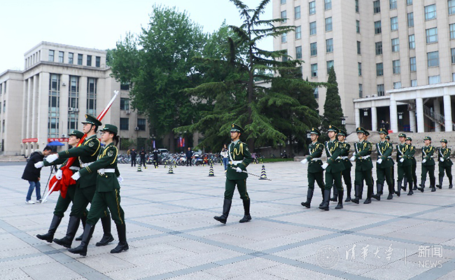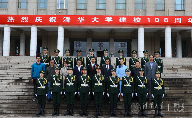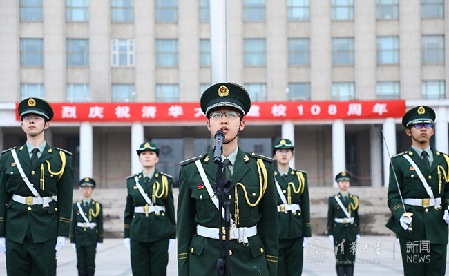 自1994年9月成立以来,清华大学学生国旗仪仗队始终以宣扬爱国主义为主题,以教育影响全体同学为目的,以“高扬一面旗,共唱一首歌”为口号,丰富了校园社团文化,成为一面鲜艳的旗帜。在武装部的指导下,每周一国旗仪仗队会在主楼前广场举行升旗仪式,并组织相关院系观看。4月28日适逢母校108岁生日,国旗仪仗队以校庆日升旗仪式的特殊方式为母校庆生。