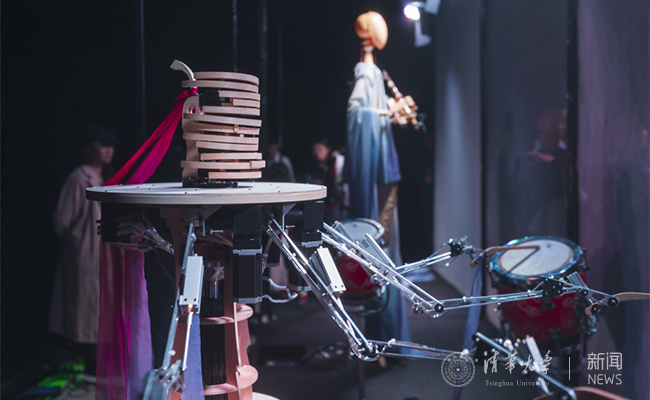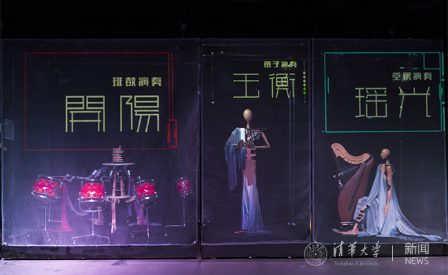 清华新闻网4月27日电(记者 李婧 学生记者 万宁宁 摄影 吴京龙)在清华108岁生日之际,一支特别的乐队为校友们奉上一曲独具特色的贺歌。4月27日上午,由清华大学美术学院与清华大学未来实验室联合研发的“墨甲”中国风机器人乐队为大家带来舞台音乐剧《墨甲幻音》。乐队融合了智能与交互技术、雕塑艺术、音乐艺术以及中国传统文化元素,由玉衡、瑶光、开阳三位“乐师”组成,分别演奏竹笛、箜篌、排鼓三种中国传统民族乐器,他们的名字,来源于北斗七星中的三颗星。