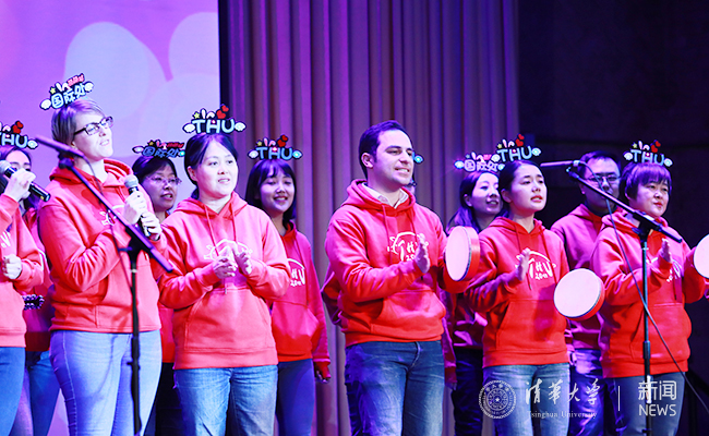第三篇章,首先通过一段厚重的视频,带领大家回顾了机关迎新春晚会《共同走过的二十年》。组织部、纪委办监察室、审计室、巡察办的歌舞串烧《追梦四十年》,资产处的舞蹈朗诵《清华颂》,人事处的小品《清华射雕英雄新传》,教务处的合唱《大中国》,科研院、文科建设处、成果与知识产权办公室、智库中心的歌舞《故乡是北京》演绎着一代一代清华人传承清华精神,坚守家国情怀。第四篇章,校机关新入职员工的特色朗诵手语歌与青春舞蹈《家》,离退休处、档案馆、校史馆的表演唱《会功夫的中国人》,保卫处的MV展演《在你身边》,则生动的展现出清华追求卓越,共建双一流。最后,晚会在艺教中心《我爱你中国》深情洋溢的歌声中圆满结束。