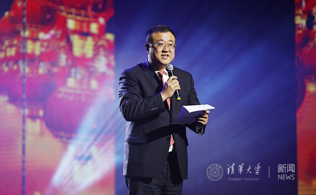 杨斌在致辞中首先代表学校向国际学生学者致以节日的问候和新年的祝福。他表示,目前清华大学有来自128个国家的3700多名国际学生和近300位国际学者,多元文化背景的师生,是“清华人”这一共同身份让我们相聚今晚。近年来,清华大学积极推动实施全球战略,在海外设立了多个实体平台,让清华成为中国与世界对话的桥梁,共同面对全球挑战。与此同时,清华也在苦练内功,全面实施“国际化能力提升计划”,努力为包括国际学生学者在内的全体师生创造更加国际化的校园环境,推动中外学生学者深度融合。他代表清华大学向国际学生学者表示衷心的感谢,并祝愿他们可以在清华园开阔视野、收获友谊与知识,在教育教学、学术科研与交流合作中开创新的里程碑。