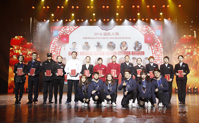 清华大学提倡构建一体化育人体系,形成全员全过程全方位育人(“三全育人”)格局,这离不开学校各个部门工作人员的辛勤付出。学生国际文化交流协会通过学生投票选出了6个“情系清华 感恩有你”部门及14位2018年度“温暖人物”,并邀请他们来到晚会现场,国际学生代表为他们赠送了感谢信。