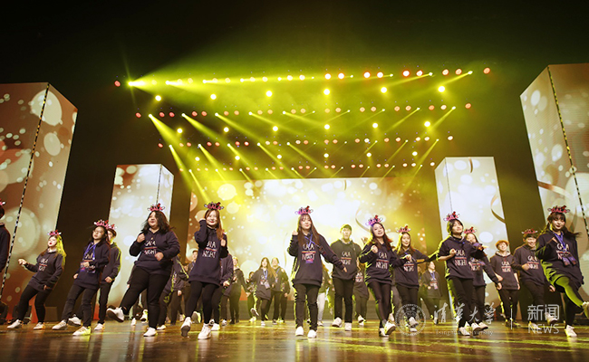 学生国际文化交流协会全体工作人员表演歌舞“We Are the World”