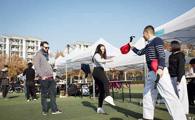 在活动现场,很多国际学生热情地参与到此次社团嘉年华活动中。本次嘉年华活动从前期的双语宣传,到现场的双语化标示以及双语志愿者,都在推动着学生社团的国际化发展。