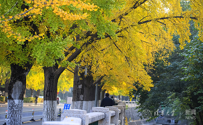 清华新闻网10月18日电(摄影 苑洁 靳翔宇 何康)忽如一夜秋风来,园子里的银杏叶黄了,金灿灿的。还有一些树叶则像染了红色颜料一般饱满地红了起来,有道是“霜叶红于二月花”。青黄交错的银杏、河水中犹如油画一般的树叶倒影、多彩的叶子掩映下的图书馆……清华园的秋,真是一个绚烂多彩的小画家。