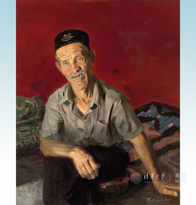 《戴哈萨克花帽的维吾尔族老人》 100x80cm 2006