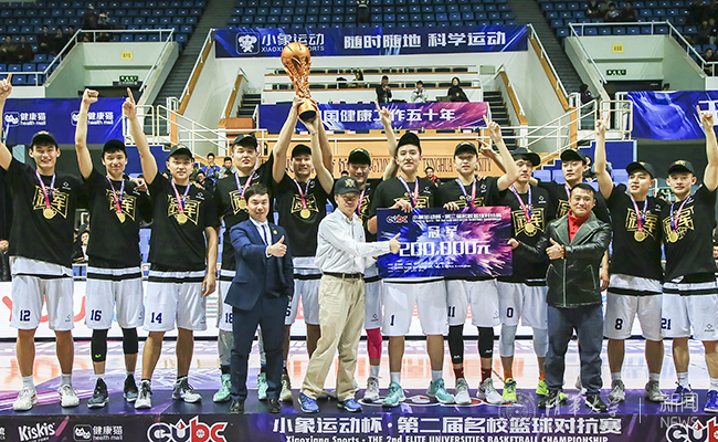 清华新闻网12月25日电(通讯员 李凤敏)12月21日晚,小象运动杯·第二届名校篮球对抗赛总决赛第二场在清华大学综合体育馆举行。清华大学男篮以98:82的比分战胜厦门大学男篮,获得第二届名校篮球对抗赛总冠军。清华大学党委副书记过勇为本场比赛开球,清华大学校务委员会副主任、校体委主任史宗恺为冠军队伍颁发奖杯。