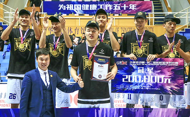 清华男篮夺冠后,现场欢呼,气氛热烈,在场师生校友聚集场内,共同见证校务委员会副主任、校体委主任史宗恺向男篮颁发冠军奖杯。清华男篮18号队员郭健被评为本场MVP(最有价值球员),清华男篮11号队员齐麟及来自其他学校的三名球员获得“篮神奖学金”。
