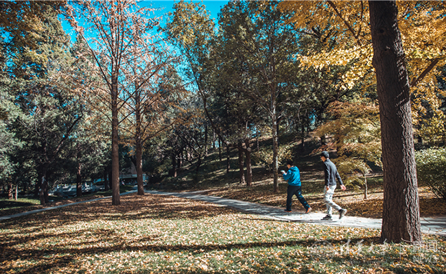 清华新闻网11月10日电(记者 张宇 摄)清华的秋是色彩浓郁的,短暂却颇叫人感慨,秋高气爽,风日晴和,常见得“枫叶落纷纷”的绝美景致。园子里裹挟着这份厚重的秋意,男女老少、三三两两,流连忘返。