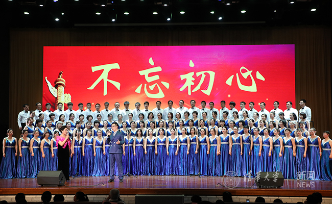 校机关、社科学院、保卫部 大合唱《不忘初心》。
