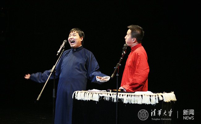 曲艺队队员表演相声《武松赶会》。蒋乐源