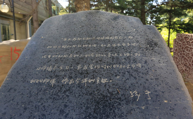 石柱上的爱因斯坦名言:“A hundred times every day I remind myself that my inner and outer life are based on the labors of other men, living and dead, and that I must exert myself in order to give in the same measure as I have received and am still receiving.”