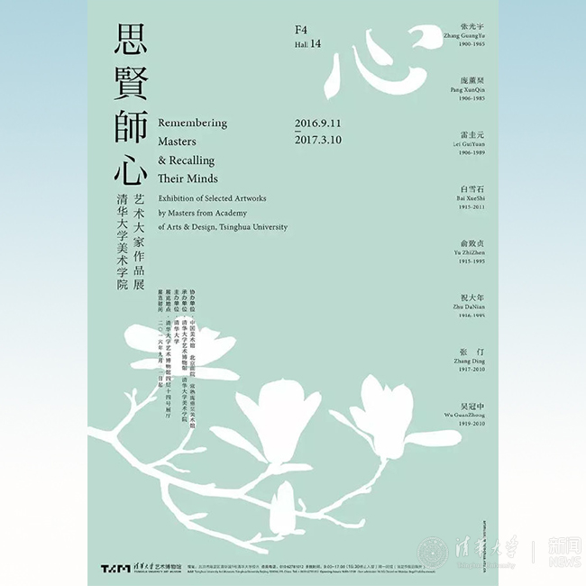 清华新闻网9月14日电 在清华大学美术学院创建60周年之际,怀着对学院学术旗帜和精神的守望及对老一代艺术大家的敬意,隆重推出“思贤师心——清华大学美术学院艺术大家作品展”。本展览分为八个板块,呈现张光宇、庞薰琹、雷圭元、白雪石、俞致贞、祝大年、张仃、吴冠中八位艺术大家的百余件美术作品。让人们在欣赏他们作品时,感受大师们的风采。