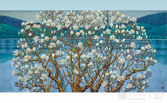 ▲ 祝大年 《玉兰花开》。 纸本工笔重彩54cm×110 cm 1978 年