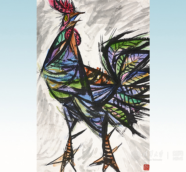▲ 张仃 《大公鸡》 彩墨装饰画。 68cm × 44.5cm 20 世纪 60 年代