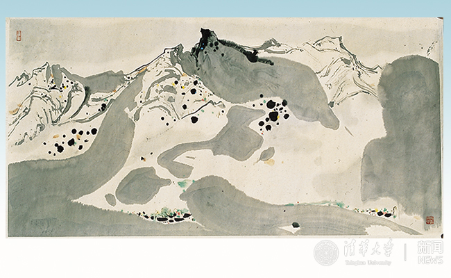 ▲ 吴冠中 《巴山春雪》。 水墨设色宣纸70cm×140cm 1983年
