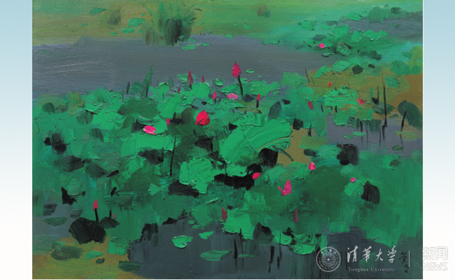 ▲ 吴冠中《红莲》 布面油画。66cm×91cm 1997 年