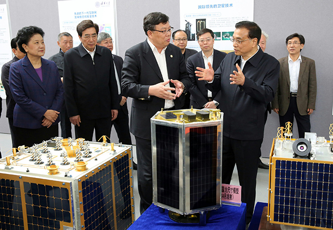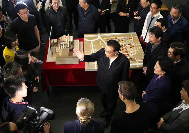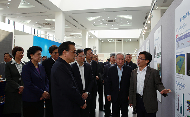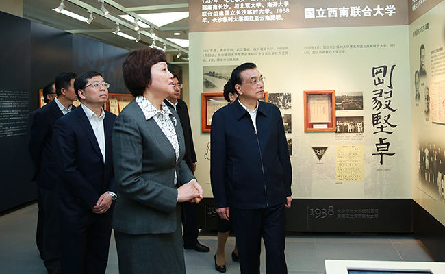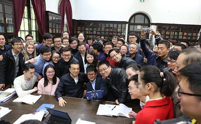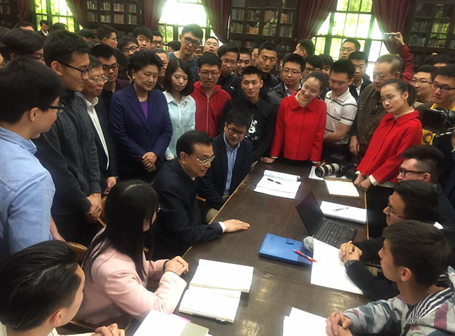 在清华大学校长邱勇院士、党委书记陈旭教授的陪同下,李克强总理先后参观了清华大学校史馆、科技创新成果展、建筑学院、结构生物学中心、出土文献保护与研究中心等并听取汇报,在图书馆阅览室与学生交流。