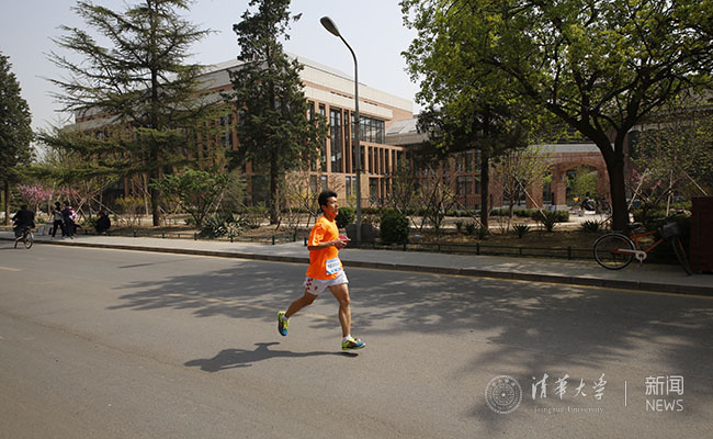 清华新闻网4月11日电 (记者 张宇 庞正源 摄)4月9日下午,伴随着数声发令枪响,第二届U-run2016清华大学校园马拉松在风景如画的清华园举行,共有2791名学生、教师和校友分别参加10公里和半程马拉松比赛,2705人完成比赛。赛道的精心设计,使得参赛选手们在奔跑中感受到了清华大学美丽的校园风光和深厚的历史底蕴。