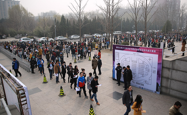 清华新闻网3月18日电(记者 苑洁 摄 )3月17日,清华大学2016届毕业生就业洽谈会在综合体育馆举行,此次洽谈会是本年度清华大学举办的规模最大的校园招聘会。中国工程物理研究院、中国东方电气集团有限公司、华为技术有限公司等来自全国22个省、市的258家用人单位参会,共提供3万余个招聘职位。有来自校内外近7000名毕业生参加了此次招聘会。