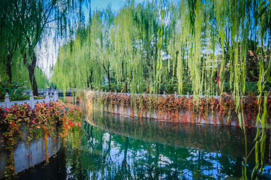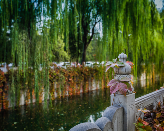 清华新闻网10月28日电 (记者 张 宇 摄)“惠风荡繁囿,白云屯曾阿。景昃鸣禽集,水木湛清华。”秋日的凉风回荡在园子里,把天空推得更高远,却留住了缱绻的柔云。秋风吹来的缤纷色彩与古朴的建筑相融相和,一片黄叶,一方红砖,平静的校河荡着碧波,都是暖化寒秋的温柔。