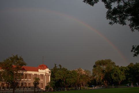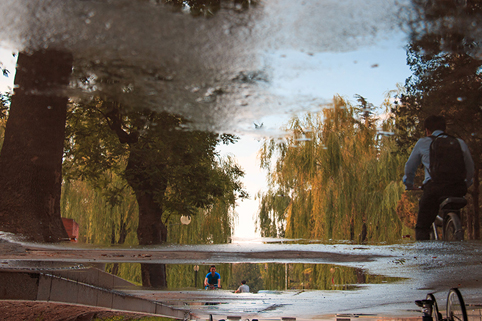 清华新闻网6月10日电 (学生记者 崔粟晋 王渊浩 摄)雨后烟景绿,晴天散馀霞。新雨后的清华,披一身绚丽的霞衣,将清新洁净揽入怀中。那水中的倒影,既有天下掉下的一片片蓝天,也有园子里一幅幅斑斓的图景,令人沉醉。