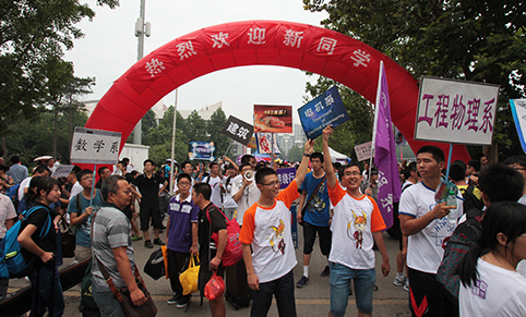 前来迎接新生的“老生”们。记者 郭海军 摄