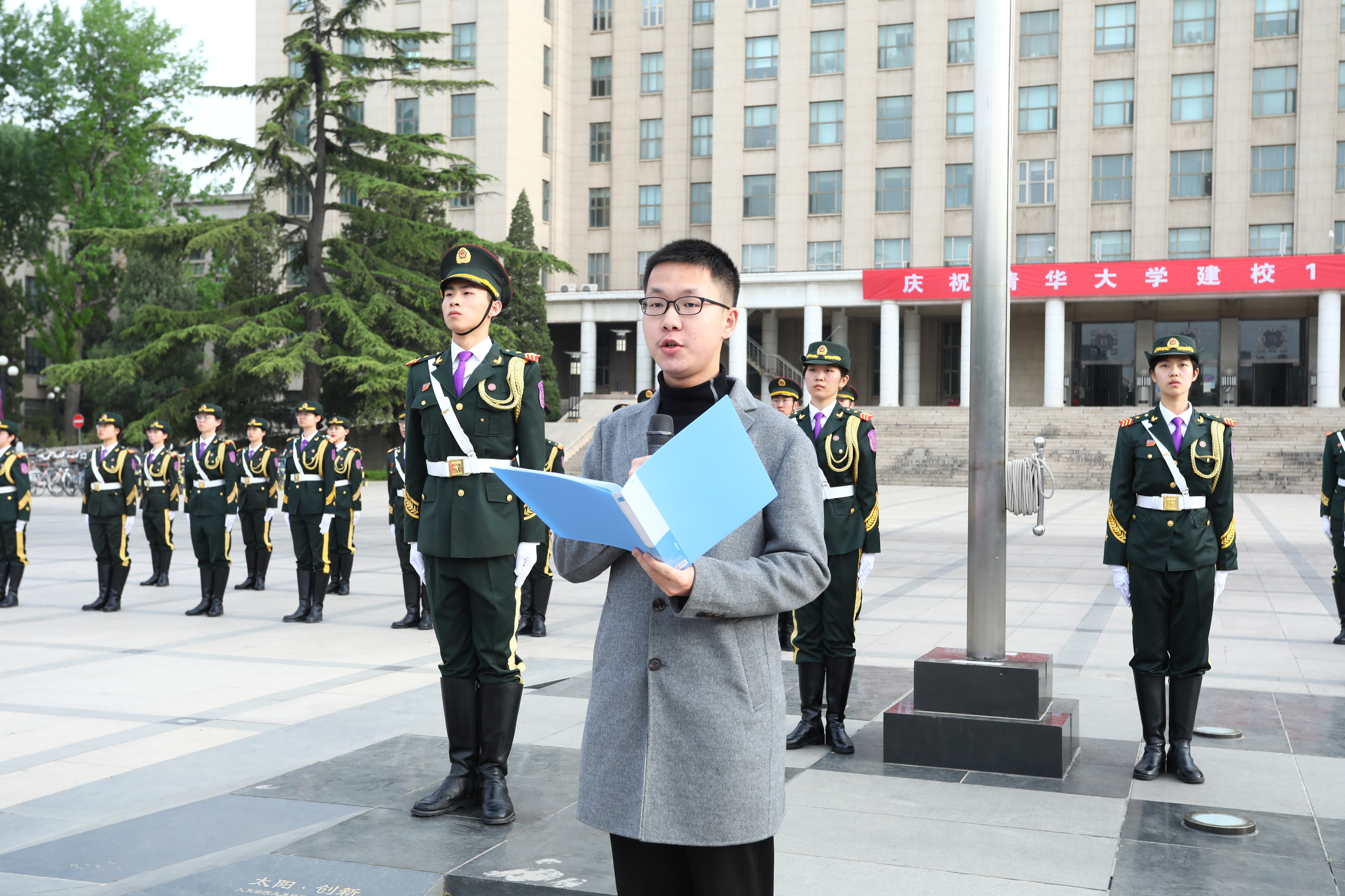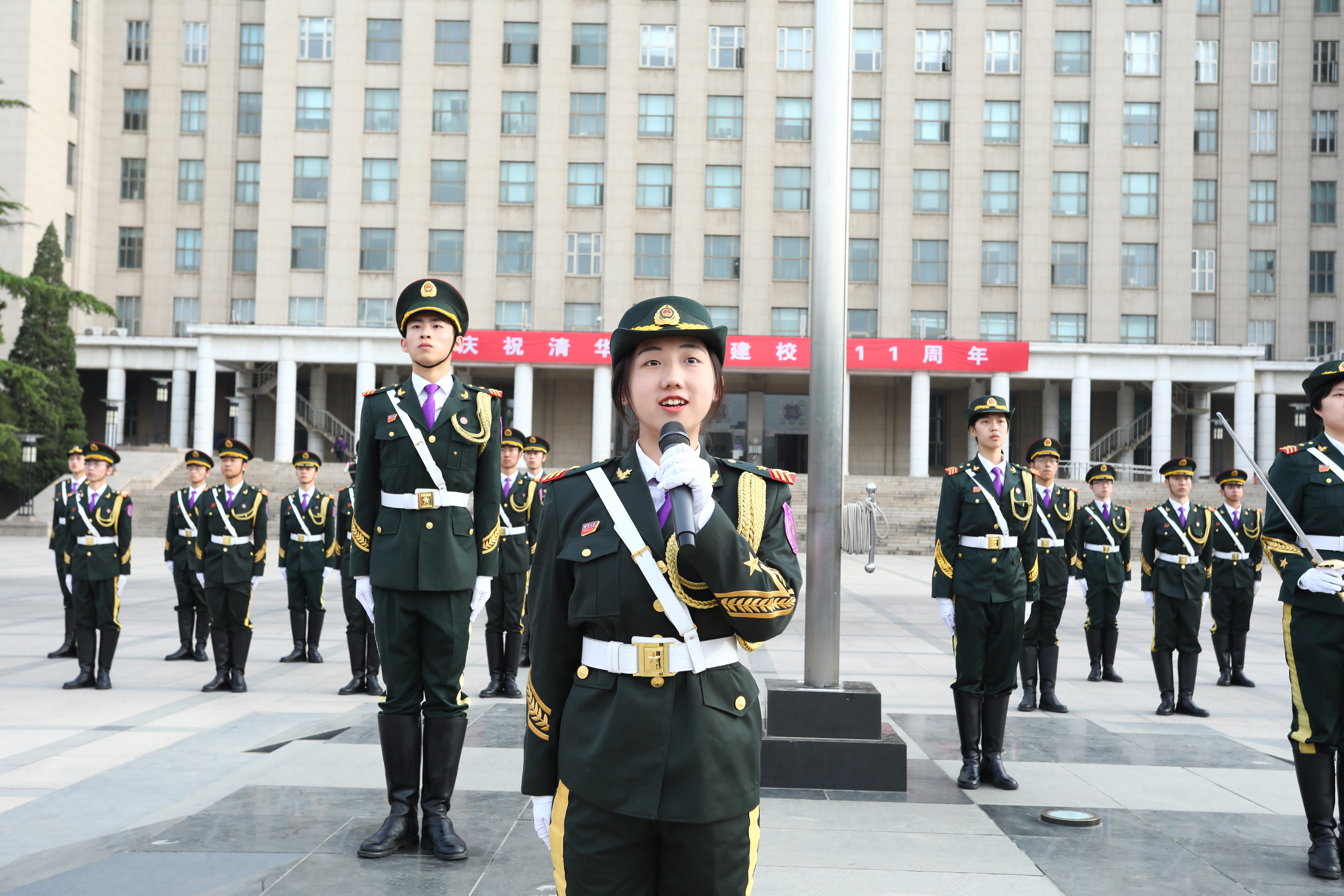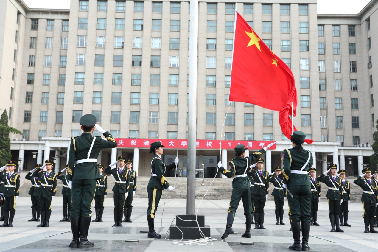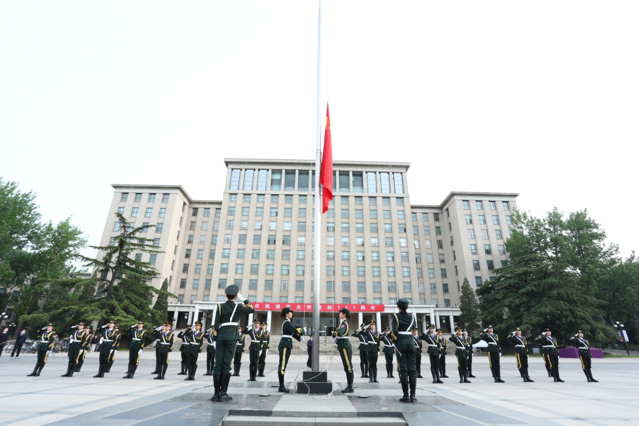 4月24日,天朗气清,清华大学111周年校庆日升国旗仪式在主楼前广场举行。师生校友共同迎接清华大学111周岁生日的第一缕晨光,国歌嘹亮,国旗飘扬。