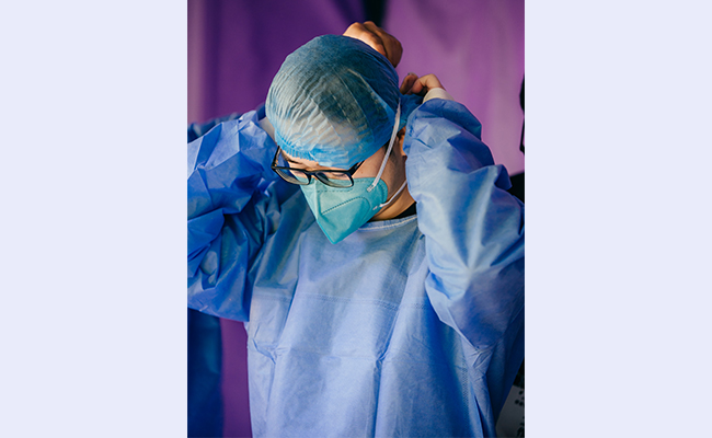 穿上防护服