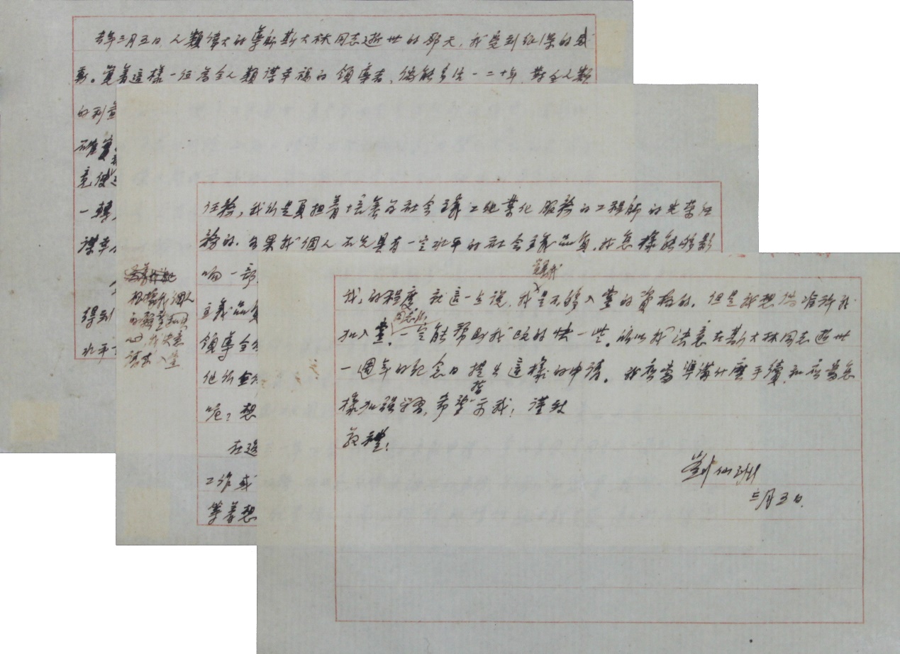 梁思成要求入党的信,毛泽东、周恩来作了亲笔批示。