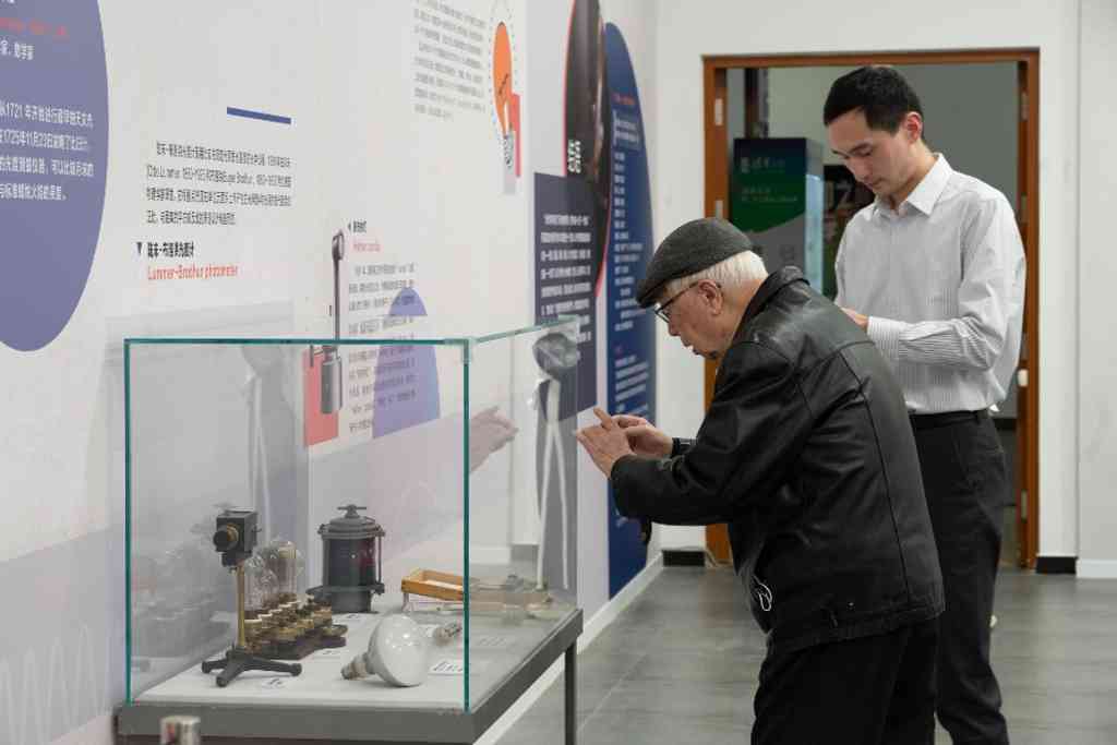 展品捐赠人、清华大学材料学院退休教授苗赫濯看展