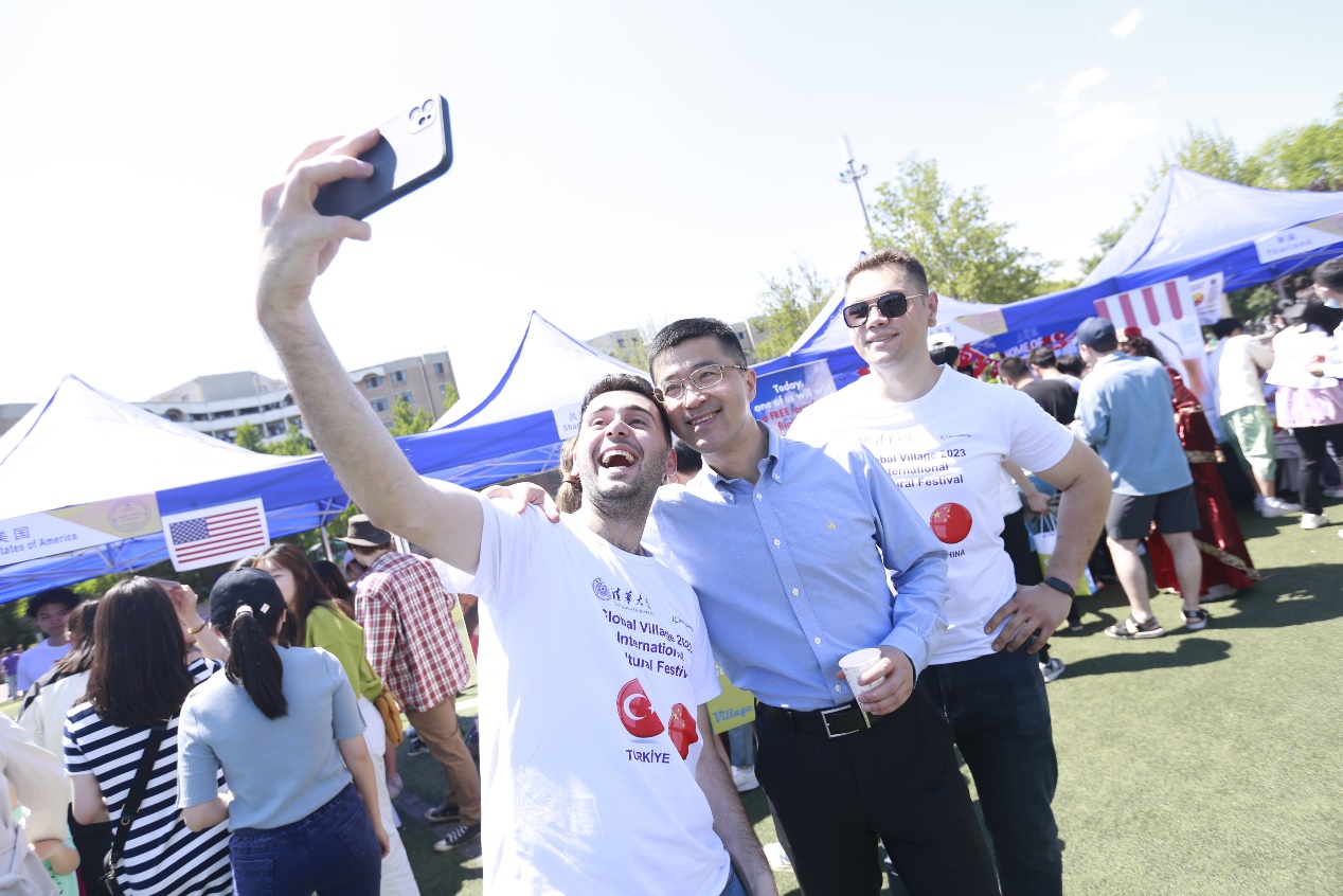 清华新闻网5月18日电 5月13日,清华大学第十一届国际文化节暨“地球村”国际文化博览会开幕。时隔四年,国际文化节回归校园,以“重聚”为主题,为清华师生带来丰富多彩的世界文化体验,吸引了3000余名中外师生及嘉宾来到紫荆操场参与其中。清华大学党委副书记过勇、亚美尼亚驻华大使谢尔盖·马纳萨良阁下以及马来西亚和越南使馆官员出席了开幕式。