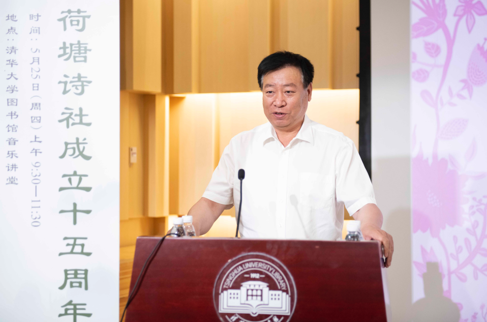 刘庆霖代表中华诗词学会和周文彰会长祝贺并充分肯定荷塘诗社十五年来取得的成绩。刘庆霖表示,清华大学通过荷塘诗社的平台在师生中开展了卓有成效的诗教育人工作,中国的诗词既要继承,又要创新,要创造当代诗词的高度,希望荷塘诗社未来可以继续发挥引领作用。