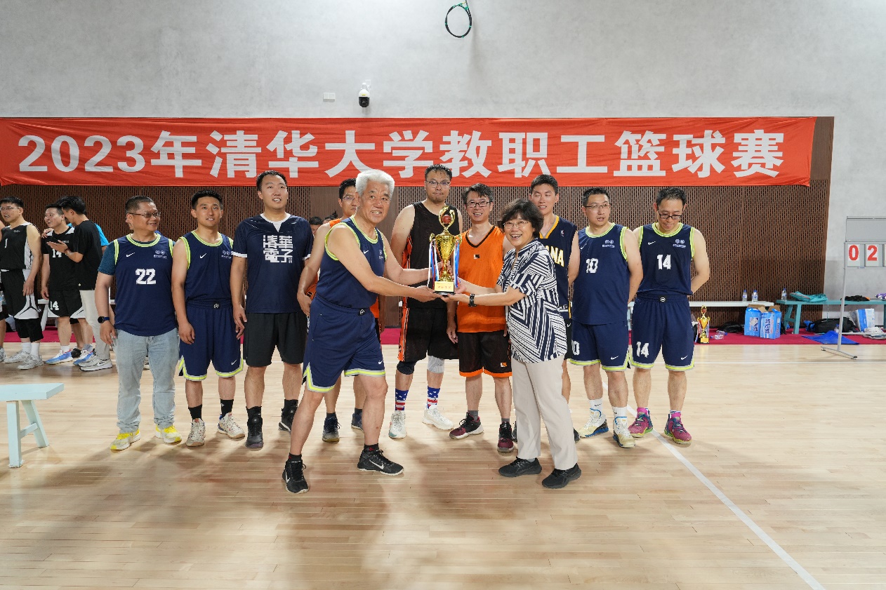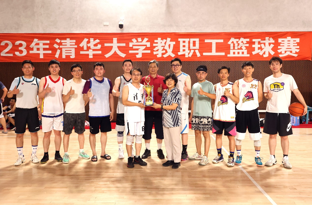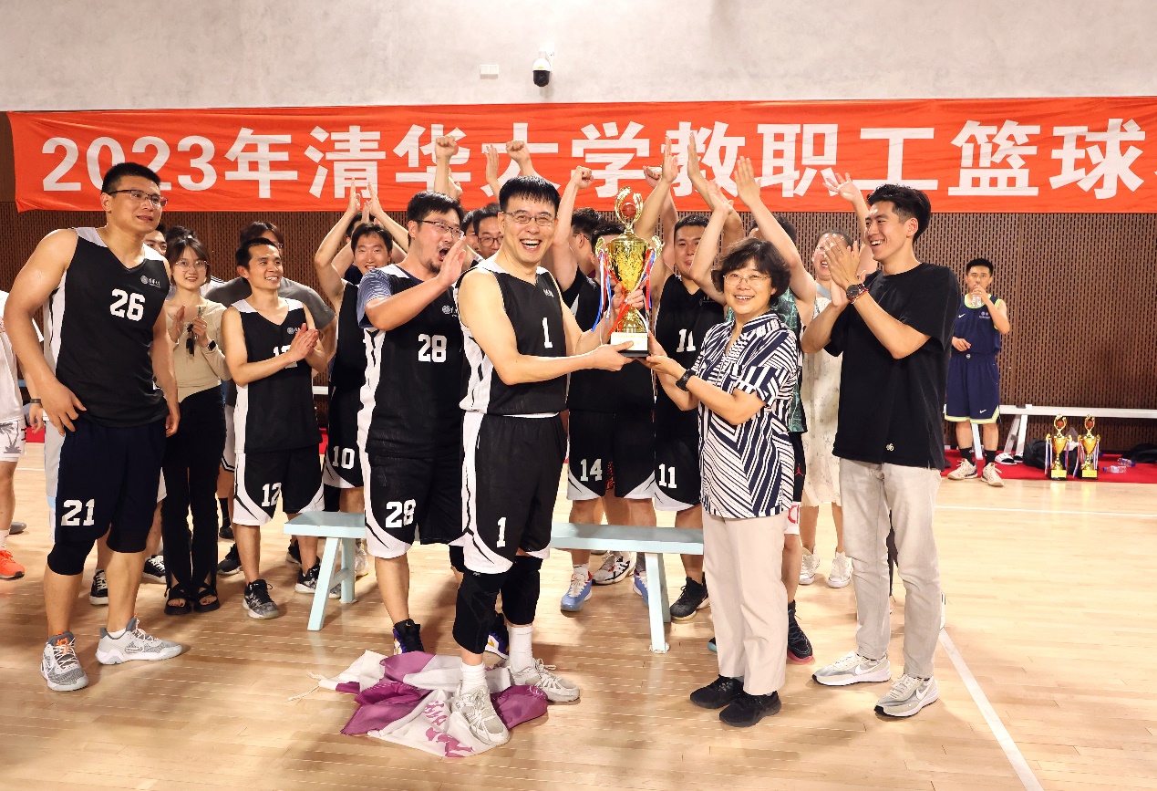 清华新闻网6月26日电 2023年清华大学教职工篮球赛于6月20日晚在学校北体育馆圆满落幕,校工会常务副主席张佐为冠亚军颁发了奖杯。