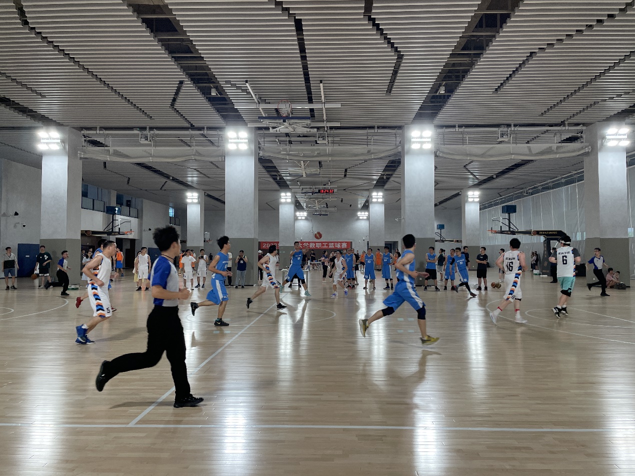 适逢北体育馆刚刚落成,今年教职工篮球赛淘汰赛阶段的比赛转入北馆内篮球场进行。宽敞、舒适、专业的场地和设备使参赛教职工们十分满意。比赛精彩纷呈,赛局跌宕起伏,展现了篮球运动的魅力。
