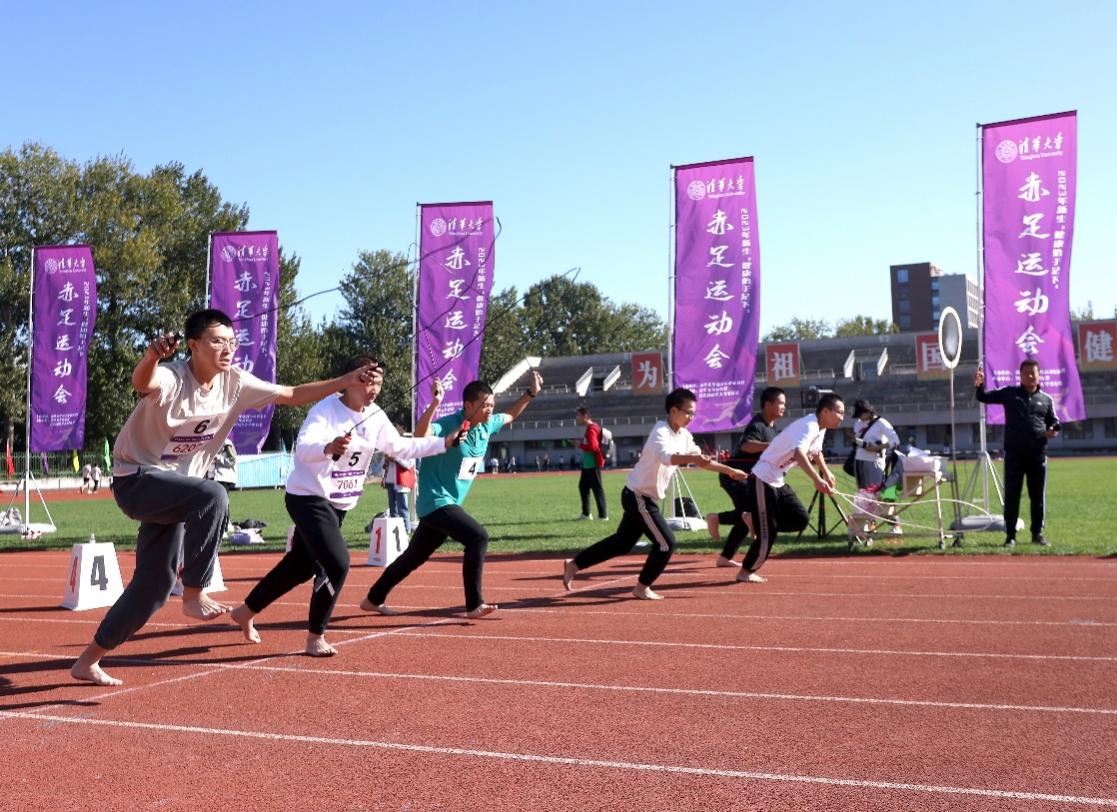 清华大学自1997年开始举办新生赤足运动会,是大一新生参加的首个以班级为单位参赛、报名人数多、覆盖项目广、趣味性强、特色突出的运动会,运动会上所有参赛学生绝大部分项目要赤脚上阵。