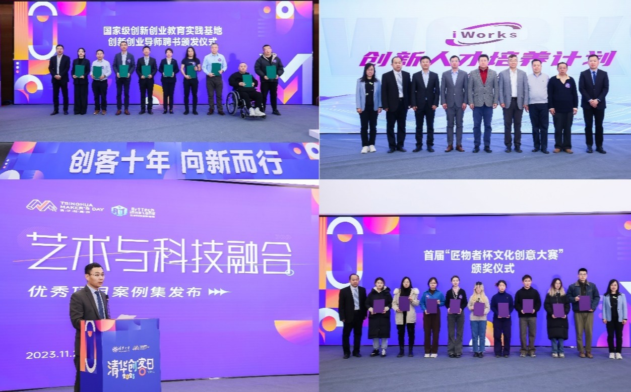 2023年是清华创客日设立十周年,系列活动以“创客十年,向新而行”为主题,包含国际创客教育论坛、创新创业教育高质量发展论坛、第九届工程文化素质教育高级研讨会、城市创变客·新太空经济论坛:2033移居火星、中国高校创新创业教育改革基金结项评审会等五场教育论坛及研讨会,2023清华创新创业教育成果展与产教融合企业展会、第三届清华工匠大赛成果展(夏季实习赛道)、首届“匠物者杯文化创意大赛”及展览、日新书院“工程素养与人文实践”课程汇报展、“X博物馆”成果展等五场作品成果展览,以及清华大学第二十四届文至吾工大学生人文知识竞赛、第二届清华医工结合创新大赛初赛、北京市第三届暨清华大学第七届3D打印大赛、第五届SDG开放创新马拉松挑战赛、iCenter开放体验活动等创新创业赛事及活动。