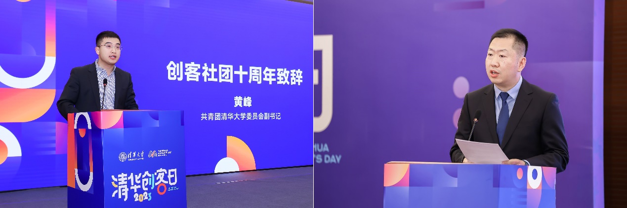 黄峰为创客社团十周年致辞。他表示,创客社团秉承“动手造万物,人人皆创客”的精神,专注于创业培养和项目孵化,已培养出众多优秀的创新创业项目和一系列高水平学生科技创新团队。清华大学基础工业训练中心双创教学部部长周晋发布了清华大学国家级创新创业教育实践基地大学生创新创业胜任力研究报告。当前,校内创业学生覆盖19个院系,53%是本科生,25%是硕士生,22%是博士生;已有34.6%的学生项目启动了融资计划。