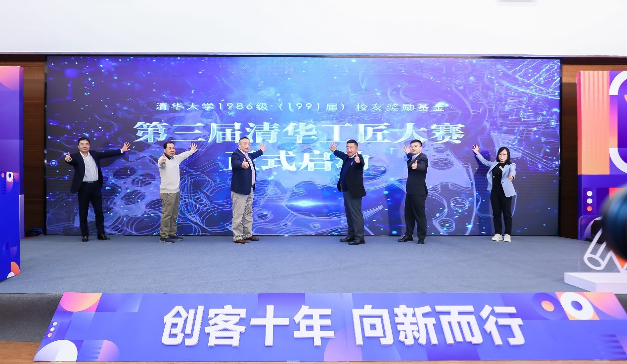 开幕式上,清华大学教务处副处长、创新创业教育协调人刘培,共青团清华大学委员会副书记黄峰,1986级校友代表关铁锤、李东、刘琳,清华大学基础工业训练中心副主任王健美等共同启动第三届“清华工匠”大赛。
