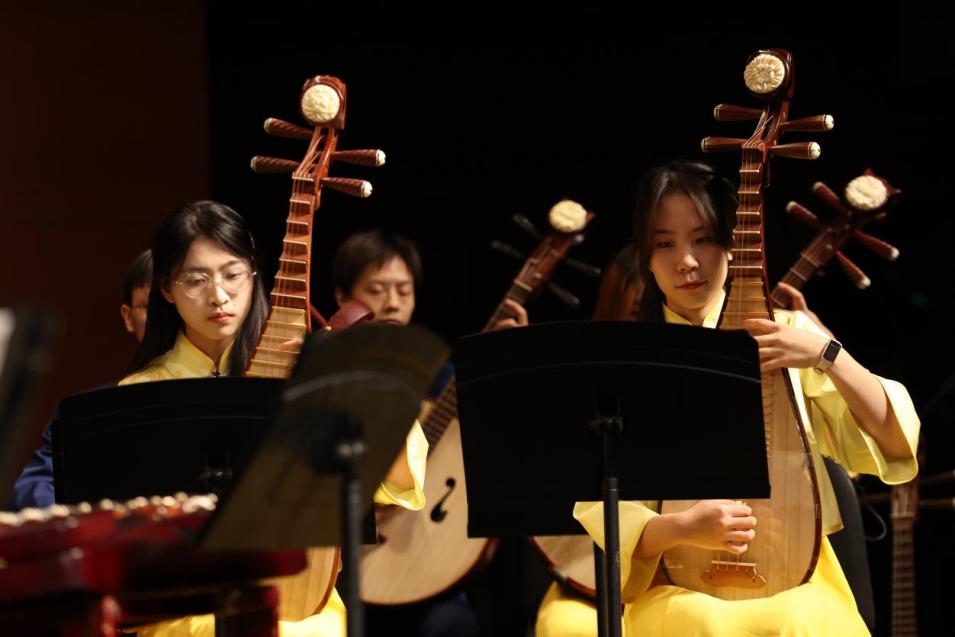 音乐会上半场以协奏、重奏曲目为主,曲目覆盖古今中外,为听众展现了民族乐器的独特音色魅力。下半场,中国人民大学学生艺术团民族乐团和清华大学学生艺术团民乐队相继为大家带来室内乐合奏曲目,既奏响了《茶马》《山语·幻》等经典作品,还上演了由清华大学学生艺术团民乐队队员编曲的作品《一生所爱》,精彩纷呈。