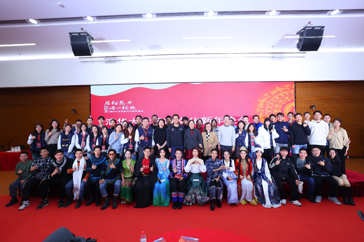 清华新闻网12月20日电 12月15日,清华大学2024年民族文化新年晚会在李兆基科技大楼举行。晚会以“石榴花开,同心绽放”为主题,校党委统战部、学生部、研工部、校团委等部门相关负责人和各民族师生代表等近400人参加晚会。